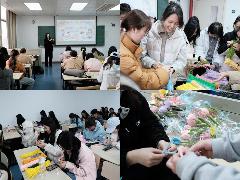 本次义卖创意升级,特别打造“好物区”和“手作区”,学院在保留爱心好物平价质优的基础上,结合学前教育专业手工设计特长,新增扭扭棒手作以及手串制作体验区,利用色彩缤纷的扭扭棒制作花束、戒指、发卡等手工艺品,并制作了各色串珠,兼具实用性与观赏性,充分展现学前学子的艺术素养与动手能力。活动当天,两校区摊位人头攒动,热闹非凡,爱心手作摊位受到学校师生青睐。