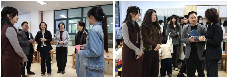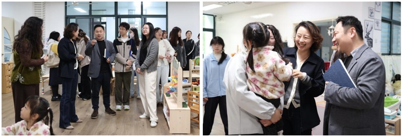 学院师生深入各班保教活动现场,实地观摩班级生态主题环创以及幼儿一日生活中的活动、教学及保教场景,学习了解金海幼儿园的班级管理模式、活动实施细节与园所文化底蕴。