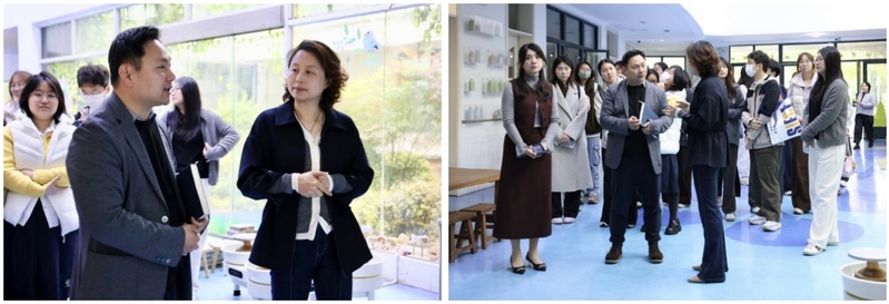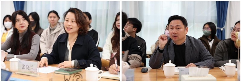 观摩结束后,双方前往会议室开展交流座谈。在会议上,张晓兰详细介绍了金海幼儿园的办园情况、生态教育特色课程建设、师资队伍发展以及未来的招聘和发展规划。她对学院学子在园期间的见实习表现给予了肯定。周泽龙对园所支持学院人才培养工作表示感谢,并介绍了学院的学科发展、人才培养及学院党建联建工作特色,希望以党建联建为纽带,深化与幼儿园的协同合作,共同为学前教育高质量发展赋能。