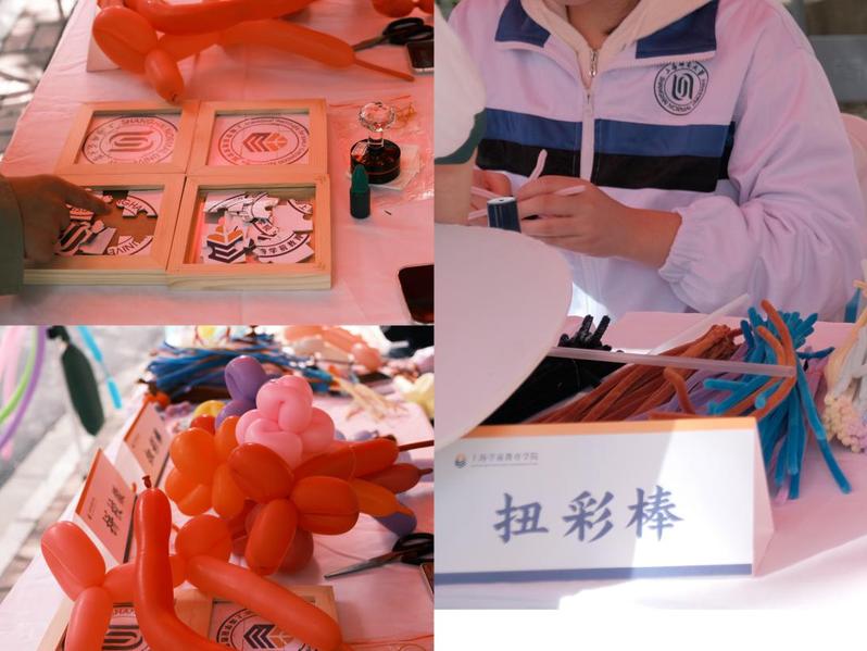 五颜六色的扭扭棒在校友手中翻飞,转眼间化作小巧的花朵、可爱的动物造型,每一件手工制品都承载着童年的纯粹与创意;拼图拼校徽环节里,校友们三五成群,凝神聚力拼接碎片,当熟悉的校徽完整呈现,往昔在校园里的求学时光也随之浮现;扎气球专区前笑语盈盈,校友们将气球扎成形态各异的作品,并纷纷合影留念。