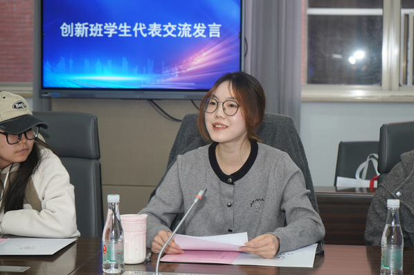 2024级创新班学生代表唐佳颖做分享发言,表达了对近红外成像等技术在学前教育中应用这个研究方向的浓厚兴趣,并表示将珍惜创新班提供的平台,积极探索科技与学前教育融合的新路径,为未来幼儿教育发展贡献青春力量。