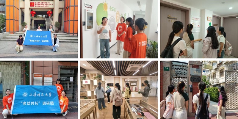 “老幼共托调研团队”由学院学前教育专业本科生李秀丽、张潇元、石宛祯、丁煜、张艺潇,以及研究生黄江玲、梁露组成。团队直面当前“托育难”与“养老愁”并存的社会痛点,积极响应国家关于“一老一小”整体解决的战略部署,在近2年的时间内,深入上海7个区30个街道开展实地调研,并对60余位老人、街道负责人等群体开展深度访谈,探寻上海“老幼共托”的发展现状与瓶颈。她们创新性研发了面向群众的10期科普推文和《“老幼共托”市民宣传手册》,线上线下覆盖超10000人次;编写了面向街道、幼儿园及养老机构的《运营指导手册》,为服务标准化提供参考;绘制了详尽的《空间设计图》,为现有社区设施的升级改造与空间功能优化提供了直观、可行的借鉴。此外,团队联合多个社区成功开展了多场“祖孙同乐”实践试点活动,让在同一屋檐下的“幼有所托、老有所乐”温馨场景从理想走向现实。团队基于调研撰写的决策咨询专报被相关部门综合采纳,并获得了来自10余家街道、幼儿园及养老机构的书面肯定,相关事迹获得了青年报、青春上海等媒体的广泛报道。
